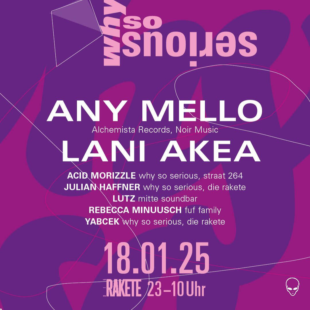 A name that embodies the boundless sky, guiding listeners on a captivating journey through the vast expanse of our cosmic origins.With a powerful fusion of Techno, Hard Techno, and psychedelic elements, LANI AKEA crafts sets that create tension, sustain momentum, and unleash pure energy. Her varied and hypnotic sound takes the audience on a rhythmic exploration that seamlessly blends diverse influences into a forward-moving and deeply engaging force.Her vision is to create a sonic voyage that energizes and connects the audience to the infinite pulse of the universe.Driven by Techno, her sets progressively build in intensity—relentlessly interweaving harder, more energetic layers and psychedelic elements—to ultimately craft an experience that is both thrilling and transformative.LANI AKEA is now a Special Resident at Kiss Klub—a legendary techno night at Die Rakete, shaping Nuremberg’s underground sound for more than 22 years. Known for its immersive atmosphere and high-energy dancefloors, Kiss Klub provides a powerful platform for deep, driving techno.